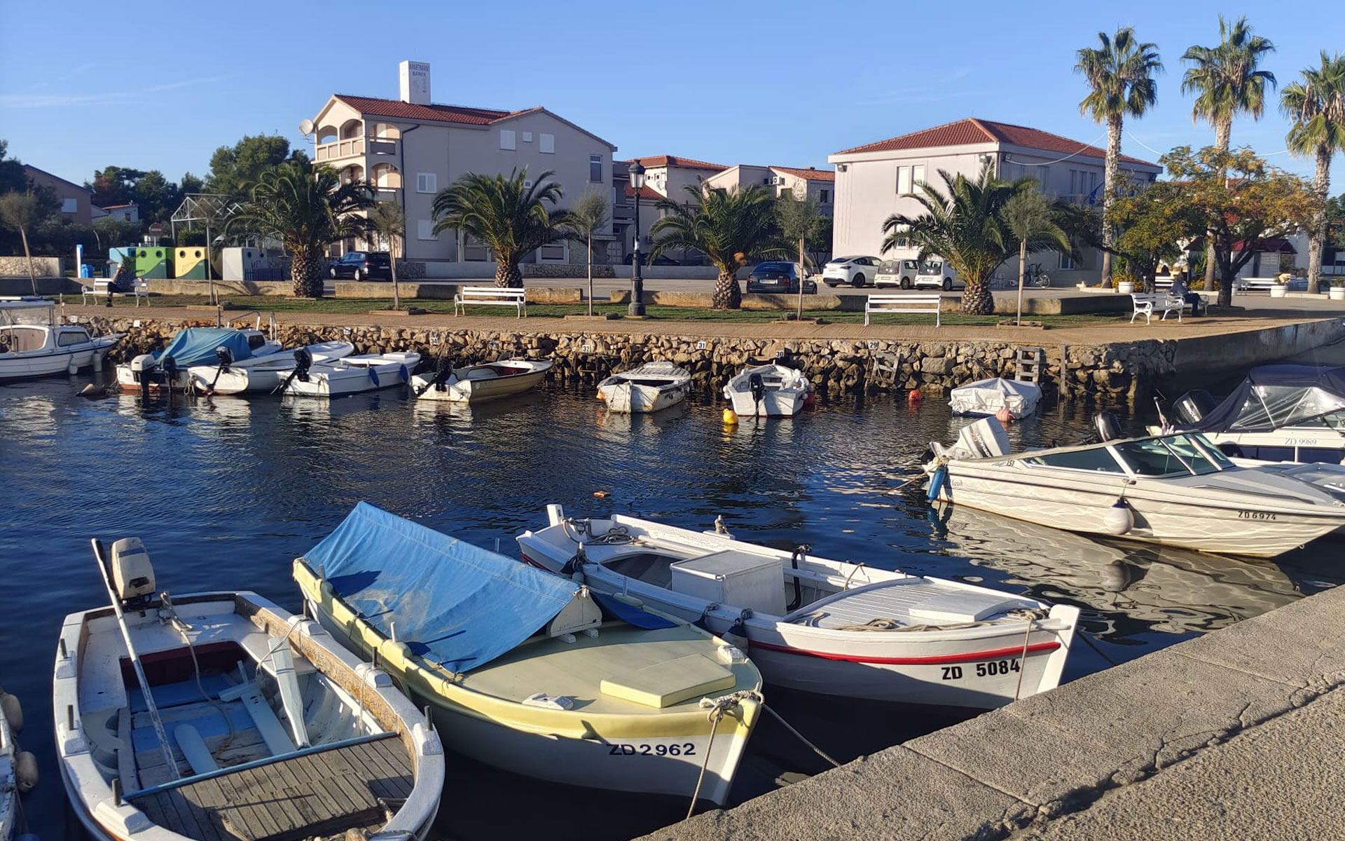 Naše apartmány jsou vzdáleny přibližně 5 minut chůze od centra městečka i autobusového nádraží, na které existuje spolehlivé a pravidelné spojení veřejnou dopravou ze Zadaru případně i taxíky.
